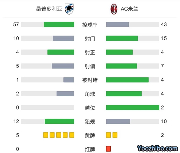 全场比赛结束,AC米兰客场2-1战胜桑普多利亚。