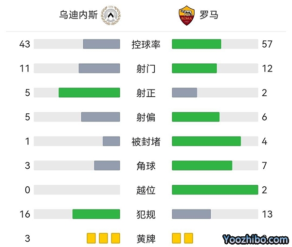 全场比赛结束,乌迪内斯4-0大胜罗马。