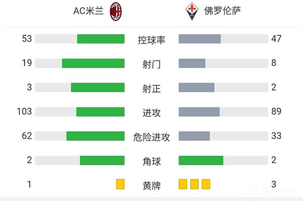 全场比赛结束,AC米兰1-0佛罗伦萨。