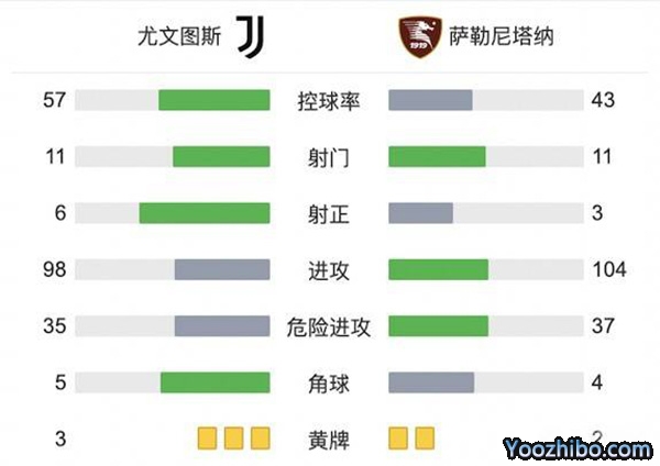 全场比赛结束,尤文图斯2-0萨勒尼塔纳!
