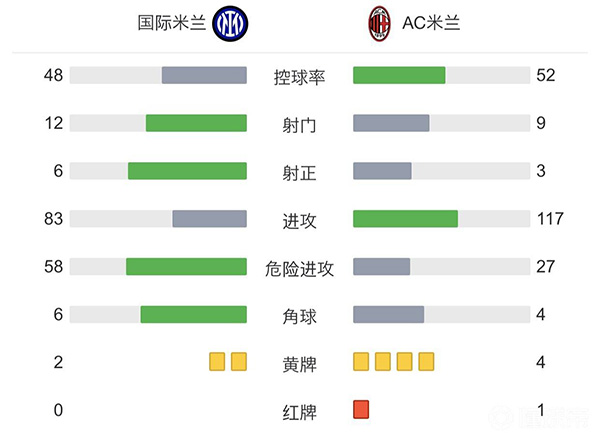 全场比赛结束,AC米兰客场2-1逆转国际米兰。