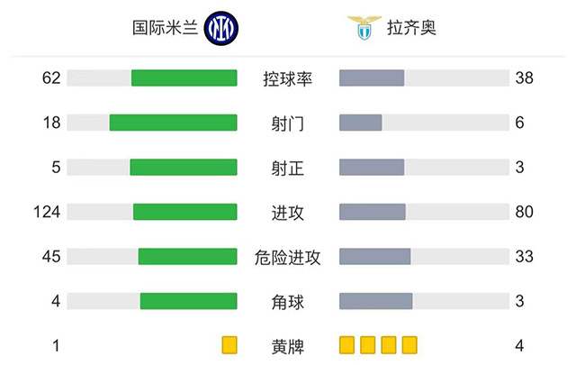 最终全场比赛结束,国米2-1战胜拉齐奥。