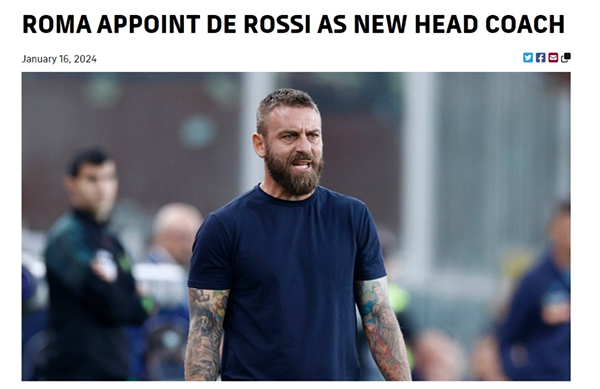 来源:直播车01-17 13:36直播车01月17日讯 ,意甲罗马俱乐部官方宣布,40岁的俱乐部名宿德罗西,将会接替穆里尼奥出任球队的新主帅。德罗西的任期至2024年6月30日,他将会带队踢完本赛季剩余比赛。