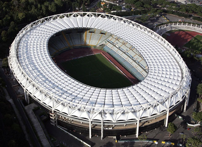罗马奥林匹克体育场,是意大利罗马市最主要的体育场,也是意甲球队罗马和拉齐奥的主场球场。 位于罗马北郊的奥林匹克体育场是由建筑设计大师E.德尔-德比奥、C.罗卡特利和A·维特洛齐设计的。
