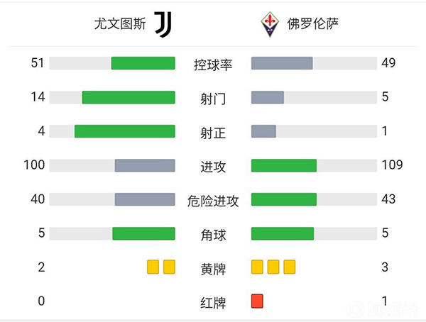 全场比赛结束,尤文图斯1-0佛罗伦萨。