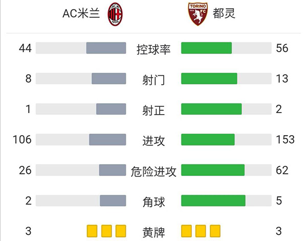 全场比赛结束,最终AC米兰1-0击败都灵,暂登联赛积分榜榜首。