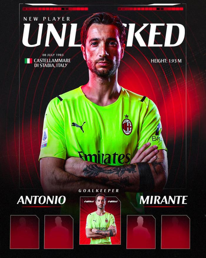 直播车10月14日讯 AC米兰官方消息,球队签下门将安东尼奥-米兰特。双方签约至本赛季结束,他将身披83号球衣。