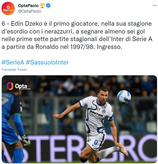 数据表明,今夏加盟国米之后,哲科7场联赛已打进6球,他是在1997-98赛季的罗纳尔多之后,首位国米处子赛季前7场联赛打进至少6球的球员。