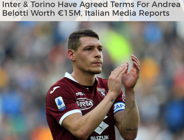 直播车讯 据意大利全市场网报道,国际米兰对贝洛蒂1500万欧元的报价已被都灵接受,接下来国米将与球员谈合同细节。