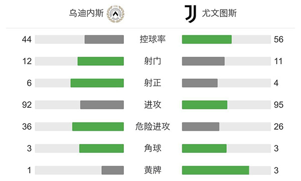 最终全场比赛结束,尤文图斯2-2乌迪内斯。