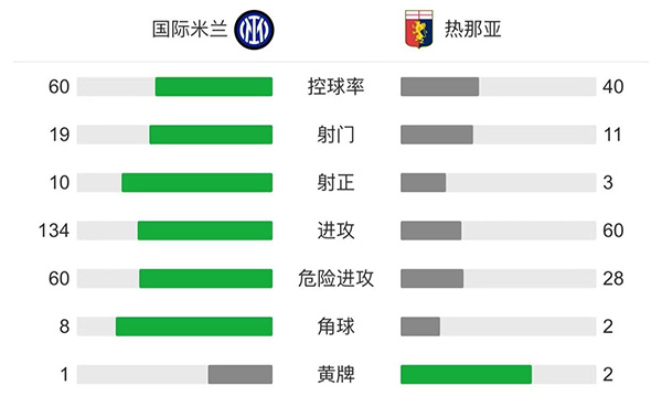 第5分钟,恰尔汗奥卢角球开到禁区中路,什克里尼亚尔头球破门,国际米兰1-0热那亚。
