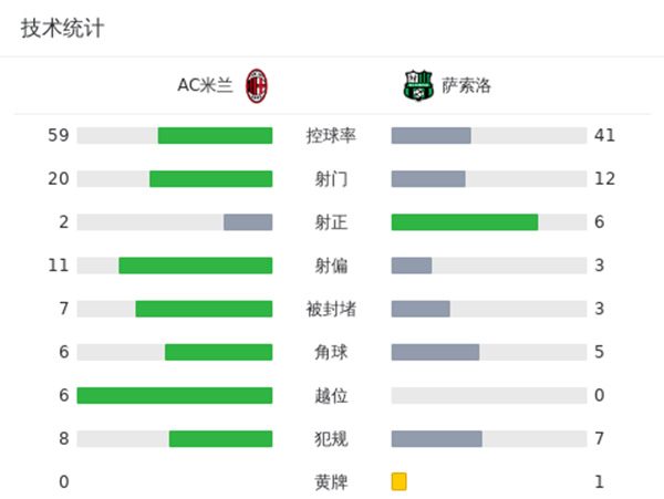 全场比赛结束,最终AC米兰1-0萨索洛。