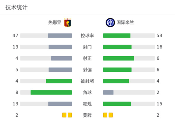 来源:直播车12-30 07:04 直播车讯:北京时间12月30日凌晨03:45,意甲联赛第18轮,国际米兰做客路易吉-费拉里斯球场,挑战热那亚,本场比赛主裁判为多维里。上半场,阿瑙托维奇补射打破僵局,德拉古辛头球扳平比分。下半场,阿瑙托维奇爆射制造威胁,阿切尔比头球造险。最终,热那亚1-1国际米兰。