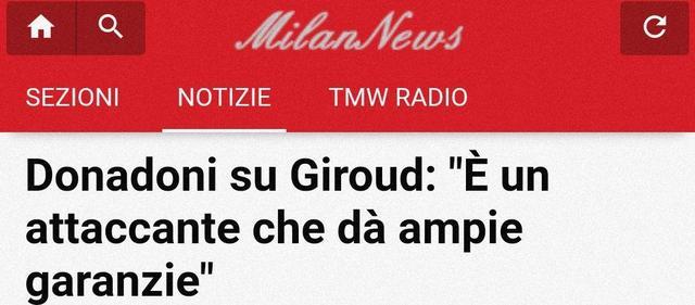 直播车讯 北京时间7月18日,多纳多尼接受了《米兰体育报》的采访,他表示米兰新援吉鲁的实力没有问题,但球队需要管理好他的出场时间。