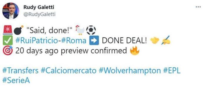 迪马称罗马和狼队已经达成了一致,《罗马体育报》称双方的价格还有100万欧元差距。