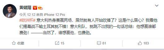 直播车讯北京时间6月6日,欧洲杯即将开战,黄健翔在社交媒体意大利国家队发表了自己的看法。