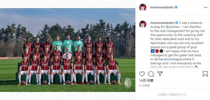 直播车讯 曼朱基奇表示:“很荣幸为AC米兰效力,感谢米兰高层能给我效力的机会,感谢教练组的努力付出,也要感谢支持我的队友们,红黑军团是一个伟大的团队。很高兴能够帮助AC米兰俱乐部重返欧冠,欧冠才是米兰应该在的地方,希望所有人都能在未来一切顺利。”