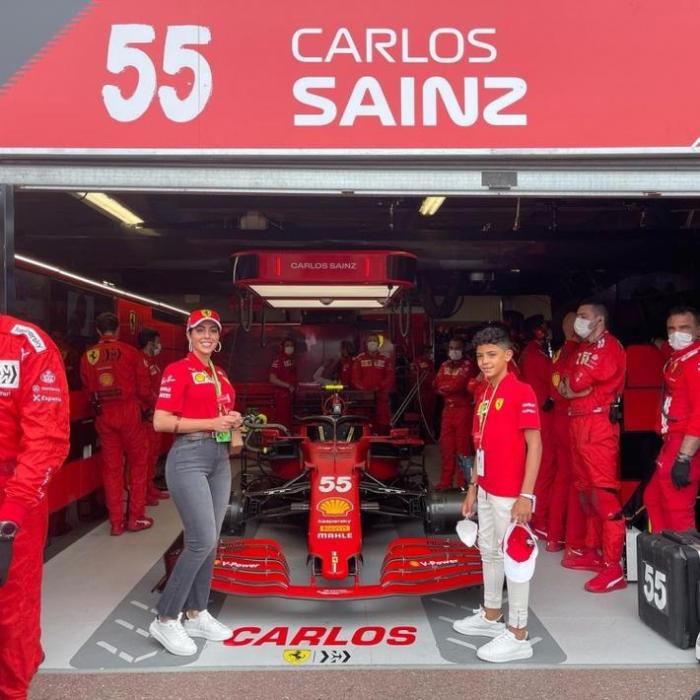 法拉利车队粉丝? 乔治娜带迷你罗观看F1比赛