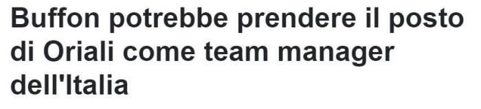目前,意大利国家队的领队是奥利亚里,他和意大利国家队的合同在欧洲杯结束后到期,布冯可能会在欧洲杯后取代他成为新的意大利国家队领队。