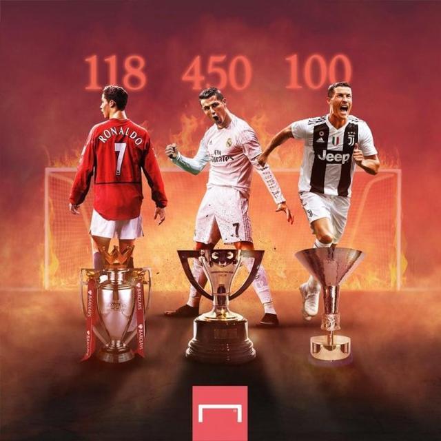 据ESPN,C罗成为了足坛历史上首位为3个不同国家俱乐部均打入至少100球的球员。C罗俱乐部生涯数据: