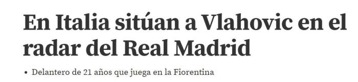 直播车讯 据西班牙媒体《世界体育报》援引意大利媒体Fiorentinanews报道,皇马持续关注佛罗伦萨的00后小将弗拉霍维奇。