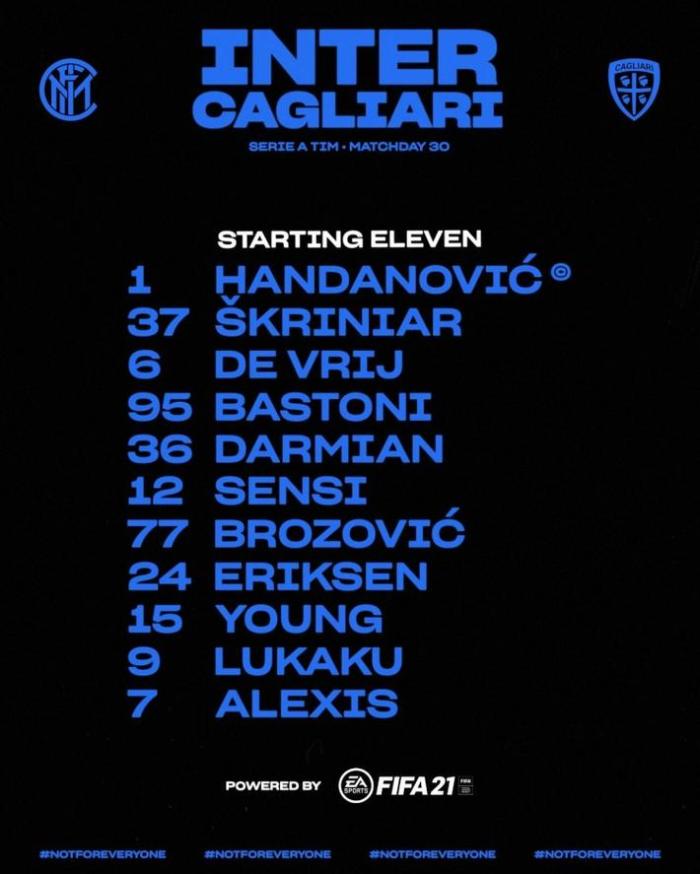 来源:直播车04-11 19:45直播车讯北京时间4月11日18时30分,意甲第30轮,国际米兰将在主场迎战卡利亚里。赛前,比赛双方公布了本场比赛的首发阵容。