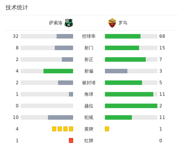第24分钟,劳伦特回敲,贝拉尔迪转身扫向后点,马修斯-恩里克包抄推射得手,萨索洛1-0罗马!