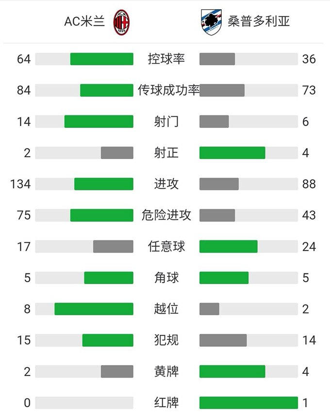 终场哨响,全场比赛结束,AC米兰1-1战平桑普多利亚,积60分继续位居积分榜次席。