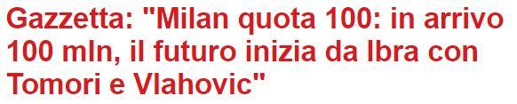 该媒体表示,米兰将在今夏投入1亿欧元,重点在于续约伊布,买断托莫里,引进弗拉霍维奇。