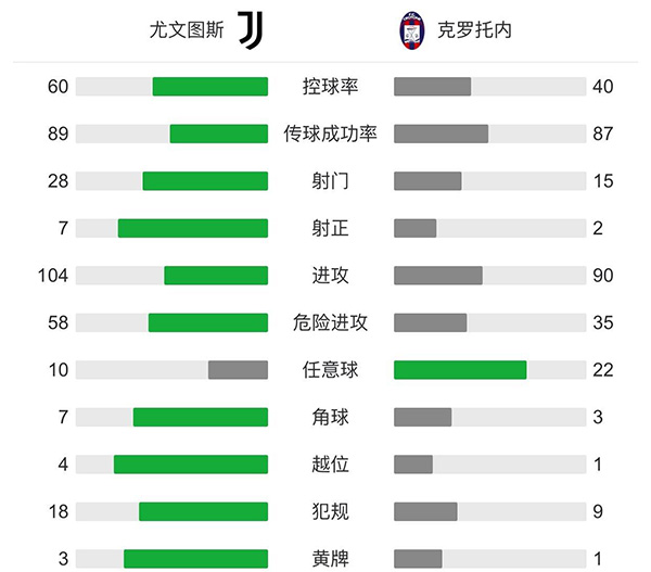 最终全场比赛结束,尤文图斯主场3-0战胜克罗托内。