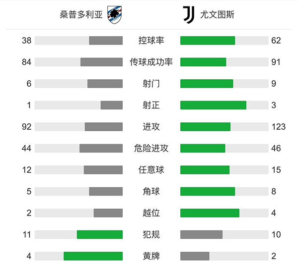 五分钟补时结束,主裁判吹响了全场比赛结束的哨音。最终,尤文客场2-0击败桑普,斩获联赛两连胜。