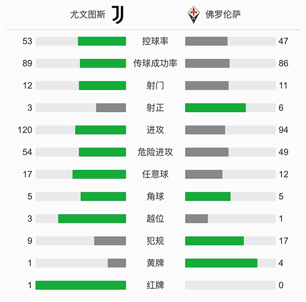 英联杯简报:尤文0-3佛罗伦萨 C罗进球被吹夸德拉多染红