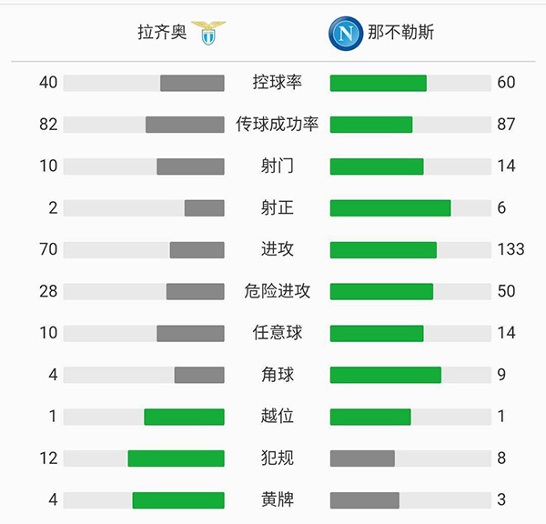 意甲简报:拉齐奥2-0那不勒斯 阿尔贝托建功
