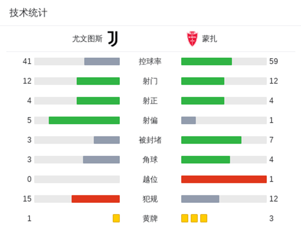 第25分钟,尤文首开记录!小基耶萨左路连续过人后突破到禁区小角度爆射破门,尤文1-0蒙扎。