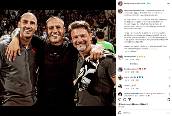 尤其是最后1轮客场1-0击败弗洛西诺内的比赛堪称相当关键。然而令人唏嘘的是,即便带队保级,乌迪内斯高层最终还是“反悔”,决定不留用卡纳瓦罗。