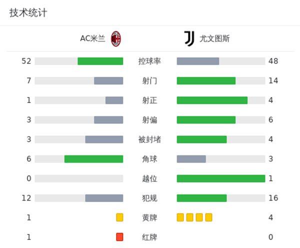 来源:直播车10-23 06:20 直播车讯 :北京时间10月23日意甲 联赛 第9轮,AC米兰主场对阵尤文图斯。上半场,吉鲁蝎子摆尾式射门踢疵,吉鲁停球打门被什琴斯尼倒地扑出,佳夫作为最后一名防守球员放倒基恩被直红罚下,基恩近距离抢点打偏;下半场,洛卡特利远射击中克鲁尼奇后变线入网,弗拉霍维奇抽射被米兰特单手扑出,坎比亚索兜射被扑,弗拉霍维奇补射也被米兰特封堵。最终比分0-1。