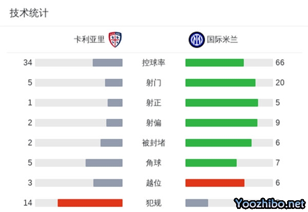 国米3-0卡利亚里五连胜暂登顶 劳塔罗破球荒巴雷拉助攻双响