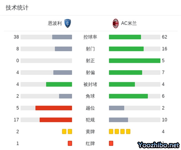 第68分钟,普利西奇右路下底传中,后点莱奥高高跃起头球弹地攻门得手,AC米兰1-0恩波利。