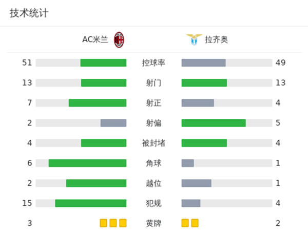 第59分钟,莱奥禁区左侧倒三角回传,普利西奇点球点抽射破门,AC米兰1-0拉齐奥。