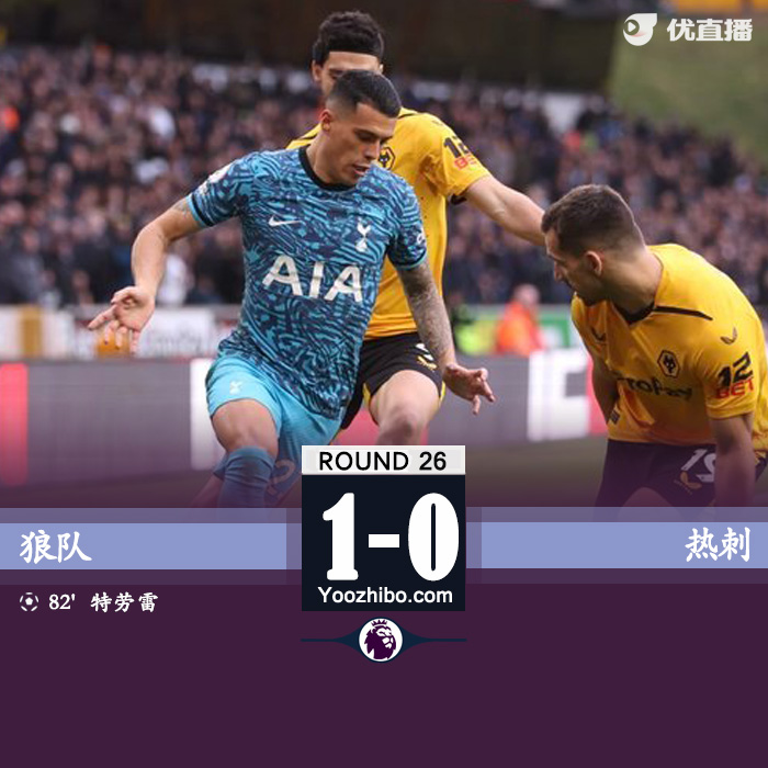 直播车讯 北京时间3月4日23:00,2022-23赛季英超联赛第26轮,热刺客场挑战狼队。上半场迭戈-科斯塔伤退,波罗任意球中框,两队暂0-0战平;下半场孙兴慜射中横梁,特劳雷补射破门,热刺0-1狼队,结束英超2连胜,仍然排在第四位。