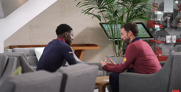 本周,索斯盖特将曼联18岁青训中场科比·梅诺从英格兰21岁以下青年队提升到成年队,有可能让其在对巴西或者比利时的热身赛完成国家队首秀。两人被发现在圣乔治公园交谈,有英格兰球迷认为,索帅将这名红魔天才招入麾下,是因为他们未来可能在老特拉福德共事。