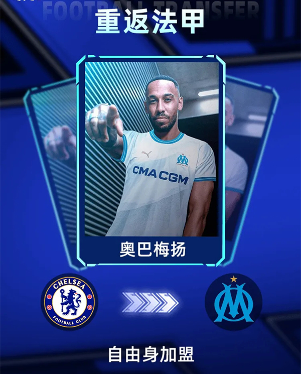 根据此前报道,他与马赛签约三年,合同至2026年6月。奥巴梅扬与切尔西解约之后自由转会加盟马赛。