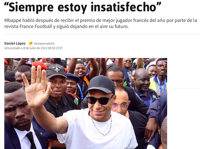 来源:直播车07-08 17:50直播车讯07月08日,法国天才姆巴佩接受了法国知名媒体《队报》的采访。在采访中姆巴佩语出惊人表示大巴黎是一支“分裂的球队”,留在这踢球对他没有太多益处。