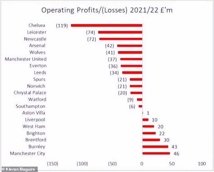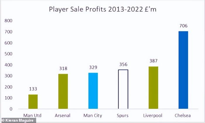 另一原因是曼联出售球员水平太差,2021/22赛季俱乐部运营亏损3700万英镑,排在英超第6位,切尔西是曼联的3倍。然而,这些俱乐部通过卖人补缺,而红魔却做不到。统计数据显示,2013年弗爵退休以后10年时间,曼联出售球员的利润仅有1.33亿英镑,而切尔西多出超过5亿英镑!蓝军卖人获取的利润,比斯坦福桥主场门票收入更高。