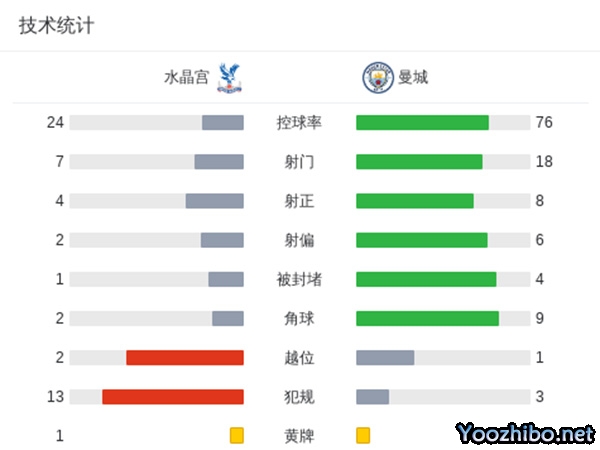 第13分钟,格拉利什左路下底,随后回传给德布劳内,后者得球晃开角度起脚攻门轰出世界波直挂死角,曼城1-1水晶宫1