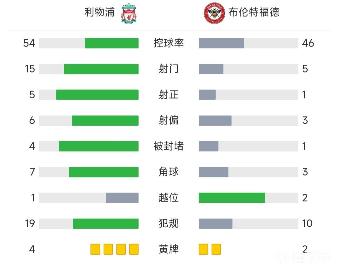 最终,利物浦1-0击败布伦特福德取得联赛6连胜,多赛两场距第四的曼联差一分。