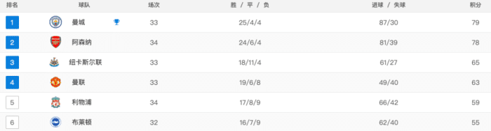 在此役输球后,曼联尽管依旧排名积分榜第4位。但前四名的位置也出现了些许隐忧。红魔只领先多赛1场的利物浦4分,领先少赛1场的布莱顿8分。