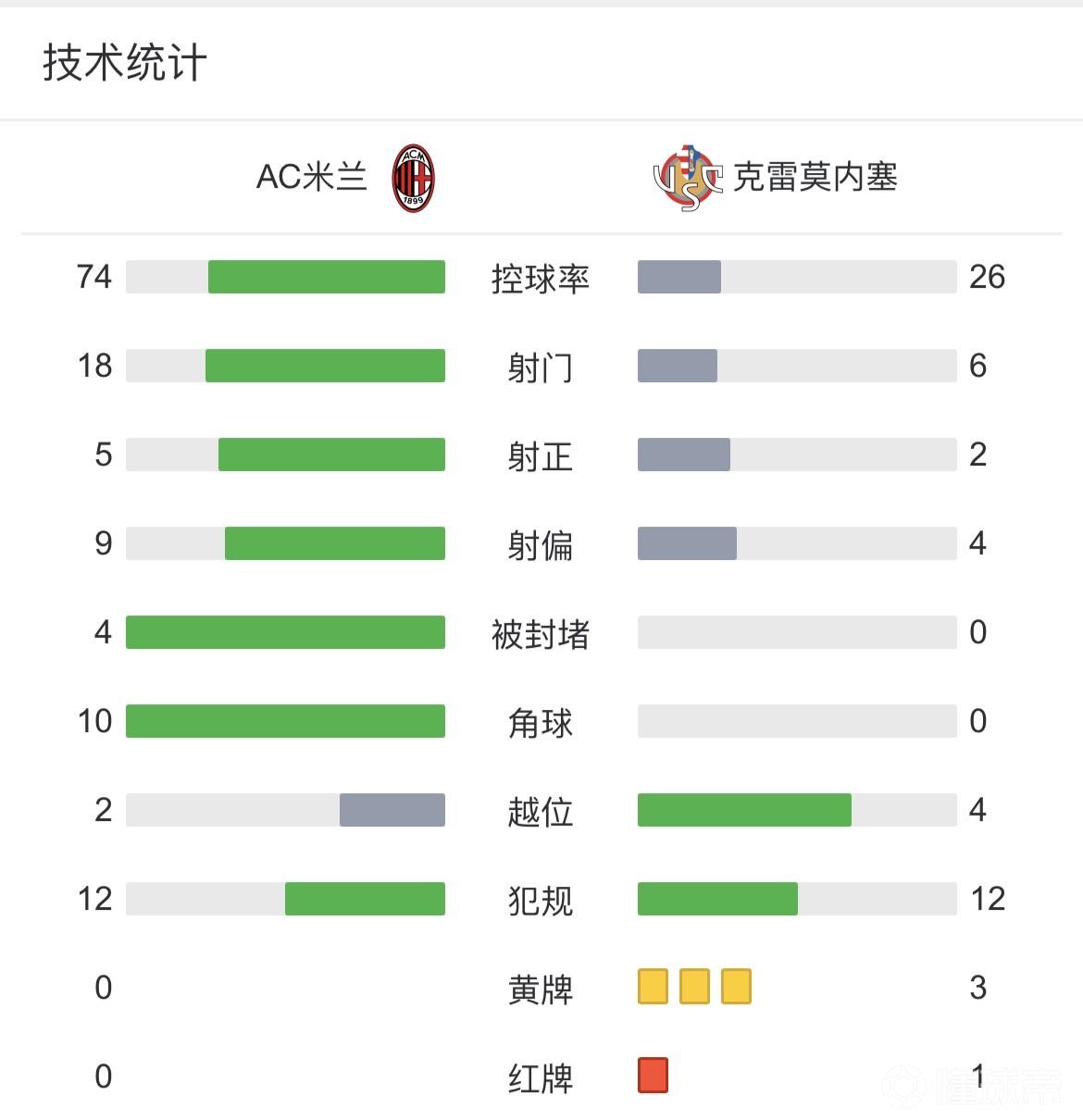 最终AC米兰主场1-1战平克雷莫纳