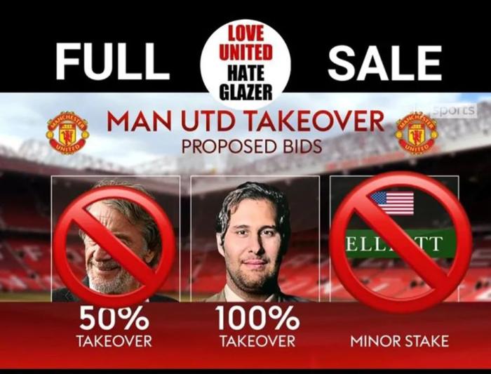 参与竞标过程的6个潜在买家,已经向格雷泽提出了三种选择:通过外部投资保持多数控制权、保留少数股权或完全出售俱乐部。对于他们的立场,一直存在两种说法。