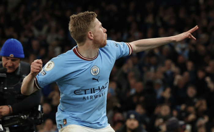 来源:直播车04-27 17:32直播车04月27日讯 英超联赛第33轮,曼城主场对阵领头羊阿森纳,经过90分钟的角逐,曼城展现了冠军相,拿出了卫冕冠军应有的统治力,直接吊打阿森纳,以4-1大胜收场。22岁的天才巨星哈兰德继续暴走,打进1球的同时完成2次助攻,独造3球;德布劳内打进2球助攻1次,后卫斯通斯也打进1球。为阿森纳打进挽回颜面的一球的是后卫霍尔丁。